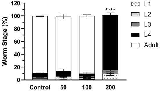 - Hartman, J.H.; Widmayer, S.J.; Bergemann, C.M.; King, D.E.; Morton, K.S.; Romersi, R.F.; Jameson, L.E.; Leung, M.C.K.; Andersen, E.C.; Taubert, S.; et al. Xenobiotic metabolism and transport in Caenorhabditis elegans. J. Toxicol. Environ. Health B Crit. Rev. 2021, 24, 51–94. [Google Scholar] [CrossRef] [PubMed]