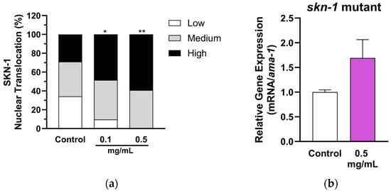 - An, J.H.; Blackwell, T.K. SKN-1 links C. elegans mesendodermal specification to a conserved oxidative stress response. Genes Dev. 2003, 17, 1882–1893. [Google Scholar] [CrossRef]
