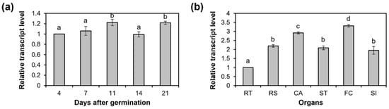 2.2. AtC3H3 Expression during Development and in Organs in Arabidopsis