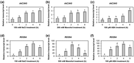 2.4. AtC3H3 Transcription Increases under Osmotic Stress Conditions