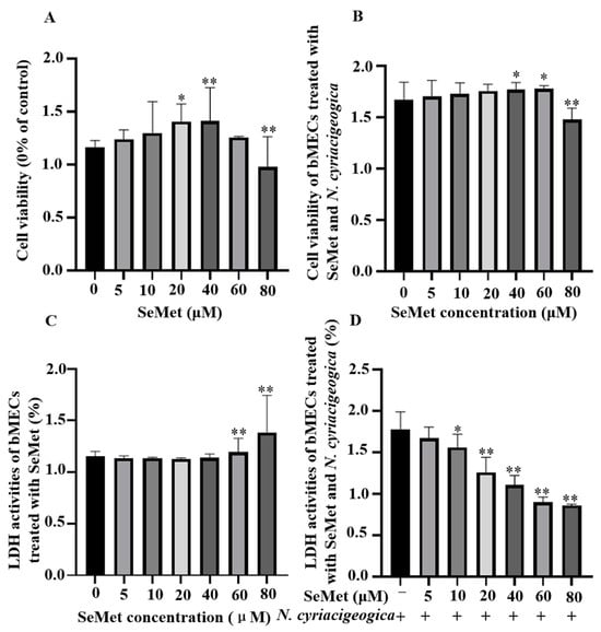 2.2. Cytotoxicity Effects of SeMet on bMECs