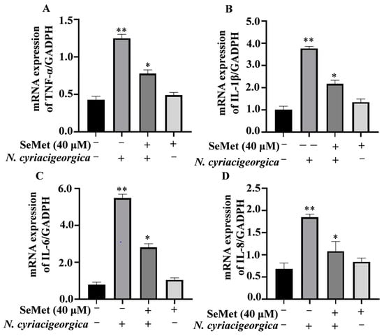 Chicago/Turabian StyleAssabayev, Talgat, Jinge Han, Halihaxi Bahetijiang, Venera Abdrassilova, Muhammad Asfandyar Khan, Herman W. Barkema, Gang Liu, John P. Kastelic, Xueying Zhou, and Bo Han. 2024. "Selenomethionine Mitigates Effects of Nocardia cyriacigeorgica-Induced Inflammation, Oxidative Stress, and Apoptosis in Bovine Mammary Epithelial Cells" International Journal of Molecular Sciences 25, no. 20: 10976. https://doi.org/10.3390/ijms252010976