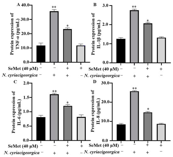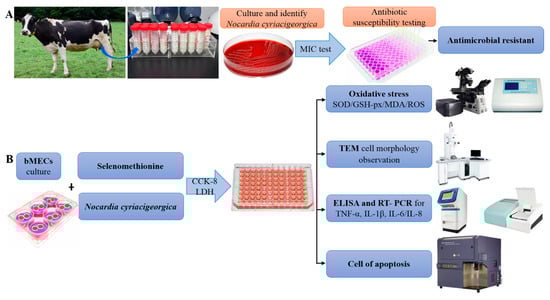 Assabayev, T.; Han, J.; Bahetijiang, H.; Abdrassilova, V.; Khan, M.A.; Barkema, H.W.; Liu, G.; Kastelic, J.P.; Zhou, X.; Han, B. Selenomethionine Mitigates Effects of Nocardia cyriacigeorgica-Induced Inflammation, Oxidative Stress, and Apoptosis in Bovine Mammary Epithelial Cells. Int. J. Mol. Sci. 2024, 25, 10976. https://doi.org/10.3390/ijms252010976