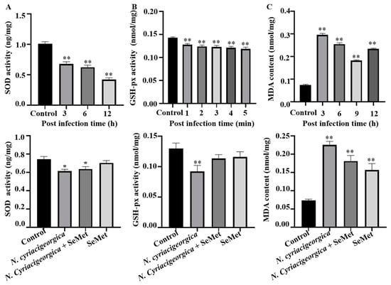 APA StyleAssabayev, T., Han, J., Bahetijiang, H., Abdrassilova, V., Khan, M. A., Barkema, H. W., Liu, G., Kastelic, J. P., Zhou, X., & Han, B. (2024). Selenomethionine Mitigates Effects of Nocardia cyriacigeorgica-Induced Inflammation, Oxidative Stress, and Apoptosis in Bovine Mammary Epithelial Cells. International Journal of Molecular Sciences, 25(20), 10976. https://doi.org/10.3390/ijms252010976