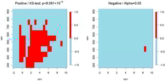 The KS test finds statistically significant regions with regard to the class separation of the dispersion plots. Figure 2. shows that in PC samples, these regions can be seen primarily on the positive ion side. Similar results of the PI and PE sampled are discussed in the Supplementary Material S1.