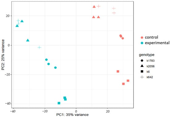 - Love, M.I.; Huber, W.; Anders, S. Moderated estimation of fold change and dispersion for RNA-seq data with DESeq2. Genome Biol. 2014, 15, 550. [Google Scholar] [CrossRef]
