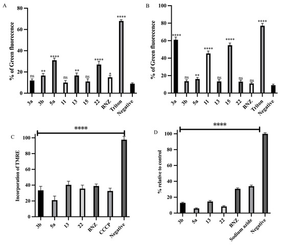 3.4.7. Determination of the Effect on Mitochondrial Membrane Potential (Δψm) in Dm28c Trypomastigote of T. cruzi