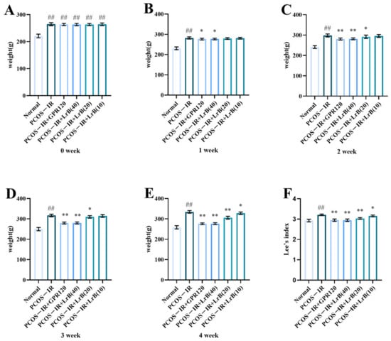2.1. LrB Reduced Body Weight and Lee’s Index in PCOS-IR Rats