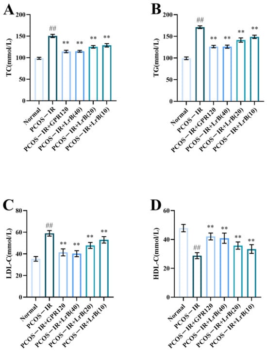 2.4. LrB Reduced Dyslipidemia in PCOS-IR Rats