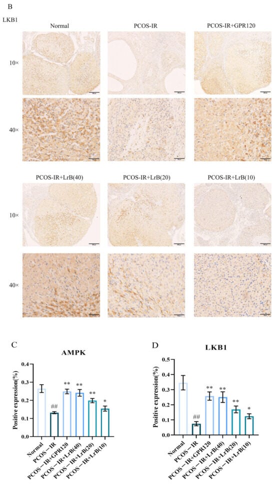 2.11. LrB Increases LKB1 and AMPK in PCOS-IR Rat Ovaries
