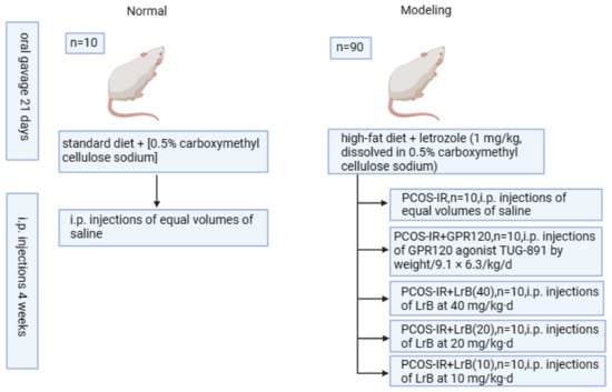 - Wang, M.X.; Yin, Q.; Xu, X. A Rat Model of Polycystic Ovary Syndrome with Insulin Resistance Induced by Letrozole Combined with High Fat Diet. Med. Sci. Monit. 2020, 26, e922136. [Google Scholar] [CrossRef] [PubMed]