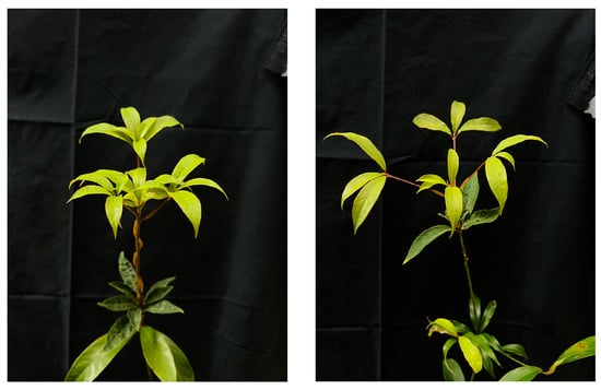 In the drought stress experiment, seedlings with consistent growth vigor are soaked in a 1/4 concentration of Hoagland nutrient solution for 10 days for root recovery treatment. Subsequently, the control group and the experimental group are cultured by adding PEG solutions with concentrations of 0% and 10%, respectively. In the high temperature stress experiment, P. bournei seedlings are placed in an artificial climate chamber with a temperature of 25 °C and a photoperiod of 12 h and cultured for 5 days. Then, the seedlings of the experimental group are placed in a culture box at 40 °C for stress treatment, while the control group is maintained at 25 °C. In the light stress experiment, the seedlings of the experimental group are placed under a light intensity of 20,000 μmol·m−2·s−1, and the control group is at 12,000 μmol·m−2·s−1. The temperature in the incubator is set at 25 °C. The photoperiod is set to 12 h of illumination.