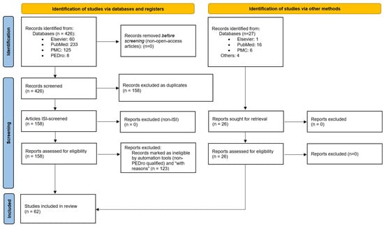 We also included 27 additional supplementary articles, which were freely found during our independent literature search. Despite having lower PEDro scores, all the articles were ISI-indexed, enriching our research further. Thus, the total number of relevant articles for conducting this literature review was 62.