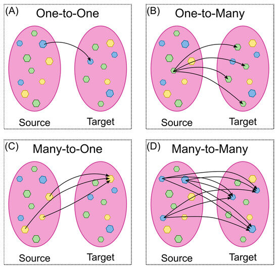 Illustration of read-across assessment approaches. (A) One-to-one. (B) One-to-many. (C) Many-to-one. (D) Many-to-many.