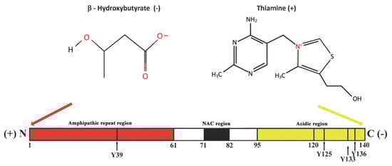 - Ruf, R.A.S.; Lutz, E.A.; Zigoneanu, I.G.; Pielak, G.J. Alpha-synuclein conformation affects its tyrosine-dependent oxidative aggregation. Biochemistry 2008, 47, 13604–13609. [Google Scholar] [CrossRef]
