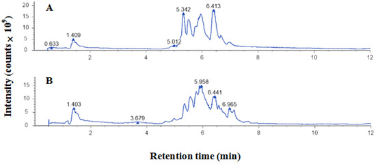 UHPLC‒MS/MS ion spectrum of ethanol-extracted propolis: (A) negative ions; (B) positive ions.