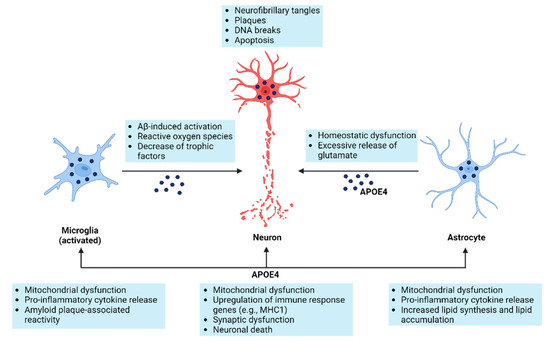 - Blumenfeld, J.; Yip, O.; Kim, M.J.; Huang, Y. Cell type-specific roles of APOE4 in Alzheimer disease. Nat. Rev. Neurosci. 2024, 25, 91–110. [Google Scholar] [CrossRef]