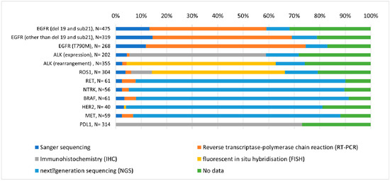 Although broad molecular testing is recommended by current guidelines at least in advanced NSCLC, some reports suggest that it is used less frequently than it should be. Testing rates of less than 80% were reported for EGFR mutations, which were the first biomarkers established for NSCLC [39]. The rates can be even lower for stages I–III of the disease, given that not all guidelines recommend molecular testing in these earlier stages [39].