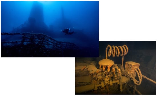 Divers performed a technical dive on the Haven wreck (Arenzano, GE, Italy), and the dive parameters are reported in Table 2. Divers breathed air as the bottom gas and enriched air nitrox 50 (EAN 50, a mixture containing 50% O2) and 100% O2 during decompression stops.