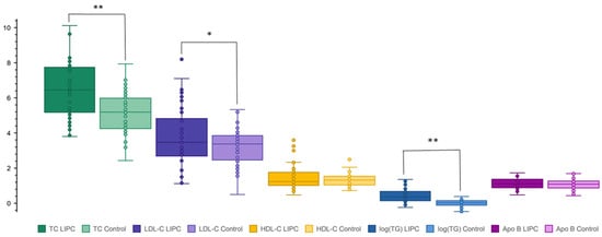 - Feingold, K.R. Introduction to Lipids and Lipoproteins. In Endotext; Feingold, K.R., Anawalt, B., Blackman, M.R., Boyce, A., Chrousos, G., Corpas, E., de Herder, W.W., Dhatariya, K., Dungan, K., Hofland, J., et al., Eds.; MDText.com, Inc.: South Dartmouth, MA, USA, 2000. Available online: https://www.ncbi.nlm.nih.gov/books/NBK305896/ (accessed on 1 July 2024).