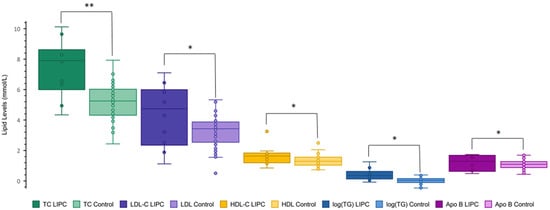 - Ruel, I.L.; Couture, P.; Cohn, J.S.; Lamarche, B. Plasma metabolism of apoB-containing lipoproteins in patients with hepatic lipase deficiency. Atherosclerosis 2005, 180, 355–366. [Google Scholar] [CrossRef] [PubMed]