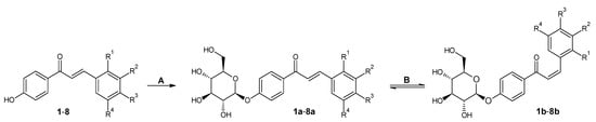 Here, we present the results of our experiments, highlighting the successful synthesis of eight trans-chalcone glycosides. Additionally, we observed an intriguing phenomenon of isomerization during the purification process, leading to the formation of eight cis-chalcone glycosides. These findings underscore the untapped potential of enzymatic biotransformation as a selective and efficient method for the glycosylation of 4′-hydroxychalcones, offering new opportunities for the development of bioactive glycoconjugates with improved pharmaceutical properties.