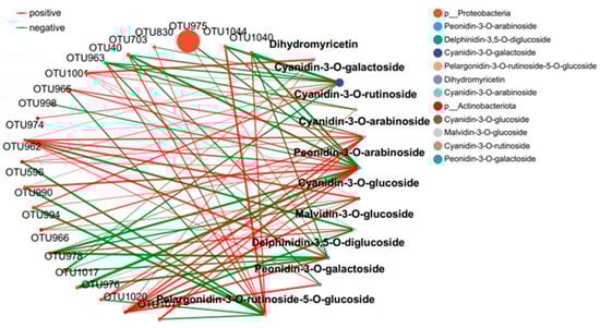 Collinear network of anthocyanin and microbial communities in purple tea leaves.