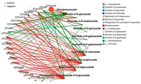 Collinear network of anthocyanin and microbial communities in green tea leaves.