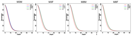 2.3. Sequencing Depth Statistics for Genome-Wide Methylated CG, CHG, and CHH