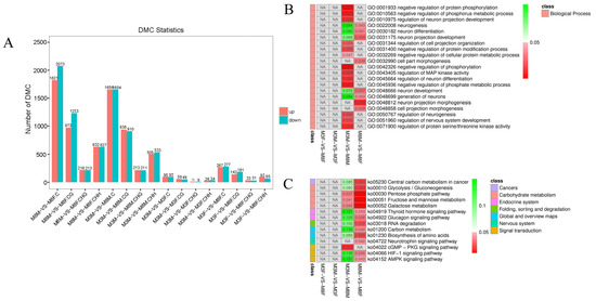4.7. Functional Enrichment Analysis of Differentially Methylated Site (DMC)/DMR-Related Genes
