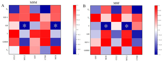 2.9. Correlation Analysis of Different Hormones with Gene Expression