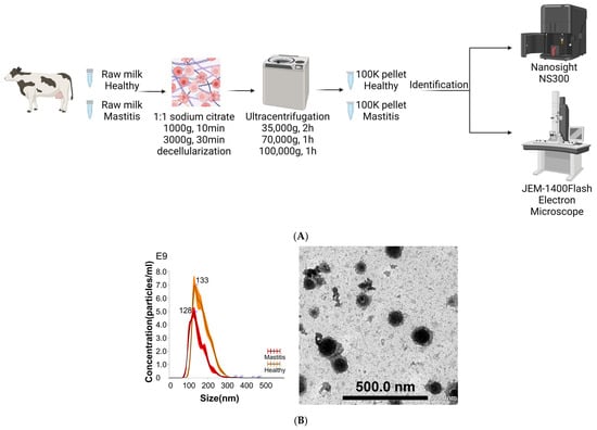 - Benmoussa, A.; Michel, S.; Gilbert, C.; Provost, P. Isolating Multiple Extracellular Vesicles Subsets, Including Exosomes and Membrane Vesicles, from Bovine Milk Using Sodium Citrate and Differential Ultracentrifugation. Bio Protoc. 2020, 10, e3636. [Google Scholar] [CrossRef] [PubMed]