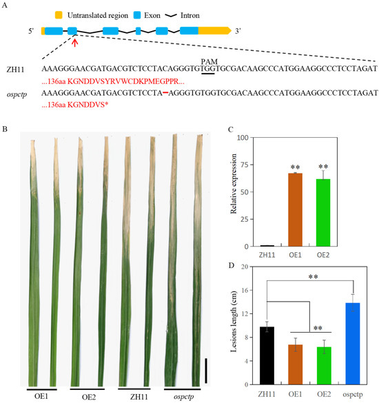 2.3. Overexpression of OsPCTP Improves Resistance to Bacterial Blight