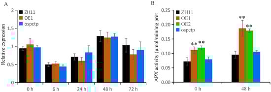 2.5. OsPCTP Influences the Enzyme Activity of APX