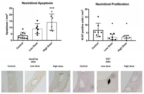 2 of neointima. For the treatment groups, the numbers of apoptoses were 9.1 ± 3.9 (
