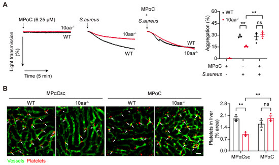 2.4. MPαC Recovers Platelet Aggregation of 10aa−/− Mice in Bacterial Sepsis