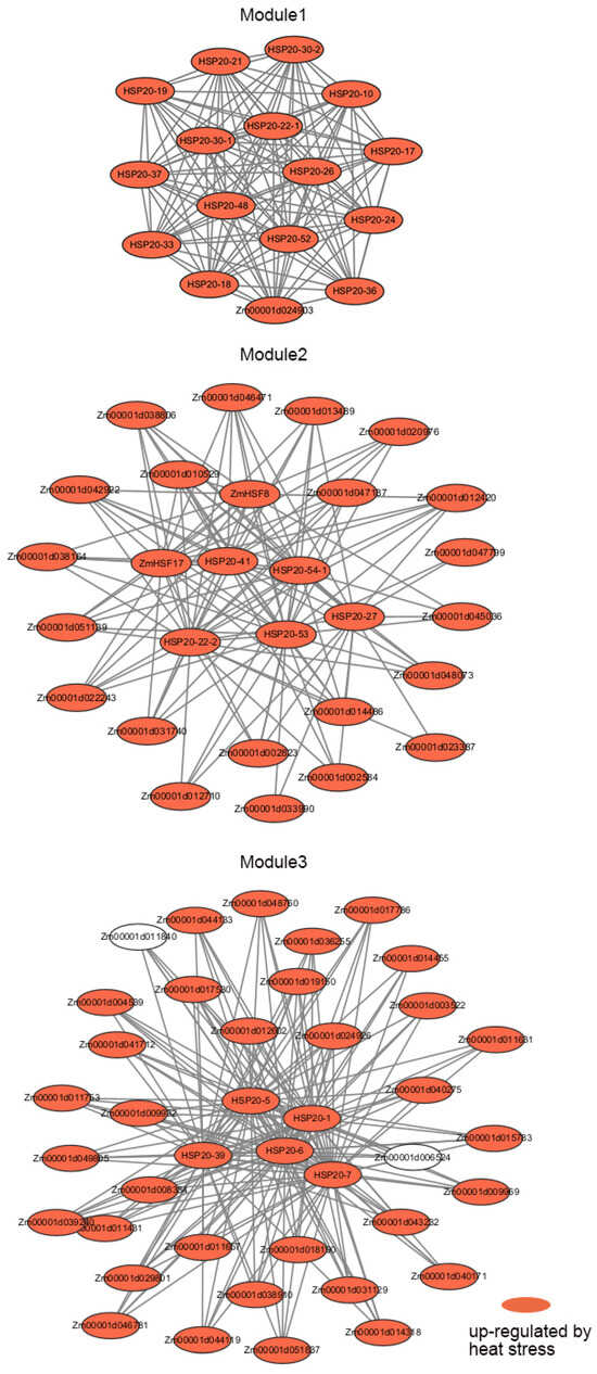 2.6. Co-Expression Network Analysis of Maize HSP20