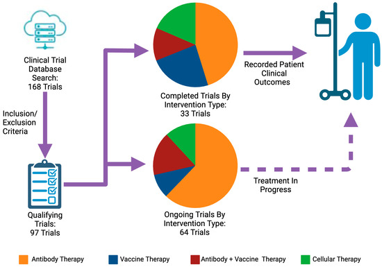The inclusion criteria for completed trials included: 1—patients diagnosed with pancreatic adenocarcinoma [Stage I, II, III, and IV PDAC patients]; 2—Phase I–III clinical trials; 3—inclusion of immunomodulatory treatment; and 4—inclusion of treatment efficacy in primary or secondary outcomes. We included all active trials on ClinicalTrials.gov in Table 1, irrespective of intended measured outcomes. In addition, we included treatment response and patient survival-based clinical outcomes in Table 2, Table 3, Table 4 and Table 5.