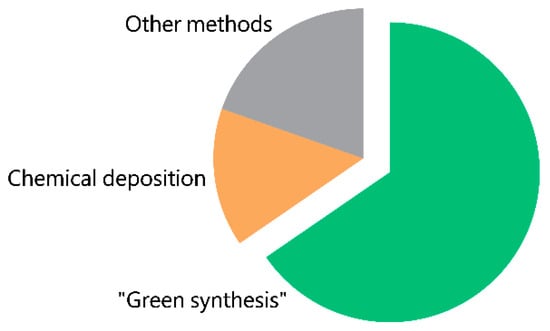 Diagram illustrating the distribution of used methods for the synthesis of CuO-NPs reported in the literature.