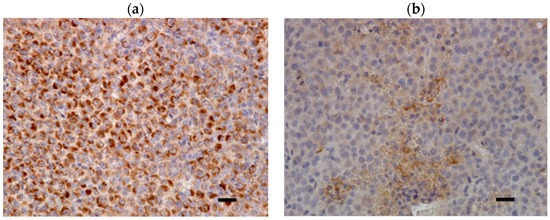 Representative FAP staining of MDA-MB-231 xenograft (high magnification). FAP expression was noted in the (a) tumor cells and (b) stroma. Scale bars = 25 μm.