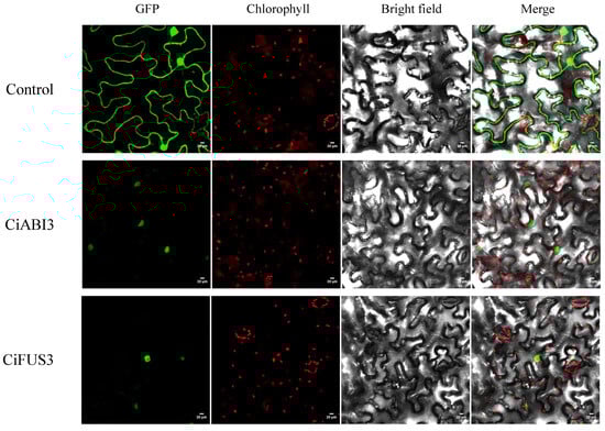 2.7. Expression Validation and Correlation Analysis of TF Genes and Subcellular Localization of CiABI3 and CiFUS3
