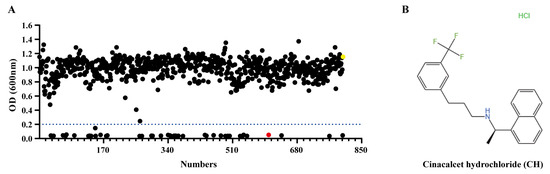 2.1. High-Throughput Whole-Cell Inhibition Screening Identified Cinacalcet Hydrochloride as a Colistin Adjuvant