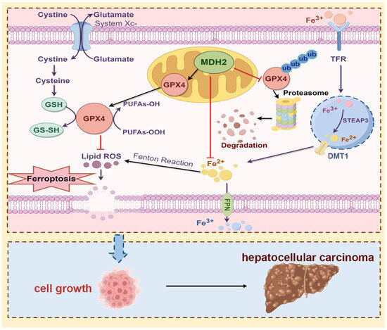Our study provides new insights into the role of MDH2 in HCC, demonstrating its function in inhibiting ferroptosis through GPX4 stabilization, thereby promoting HCC cell growth. These findings offer novel targets and strategies for HCC treatment. Further investigations into the regulatory mechanisms of MDH2 in HCC development and exploration of therapeutic approaches targeting MDH2 and ferroptosis are warranted.