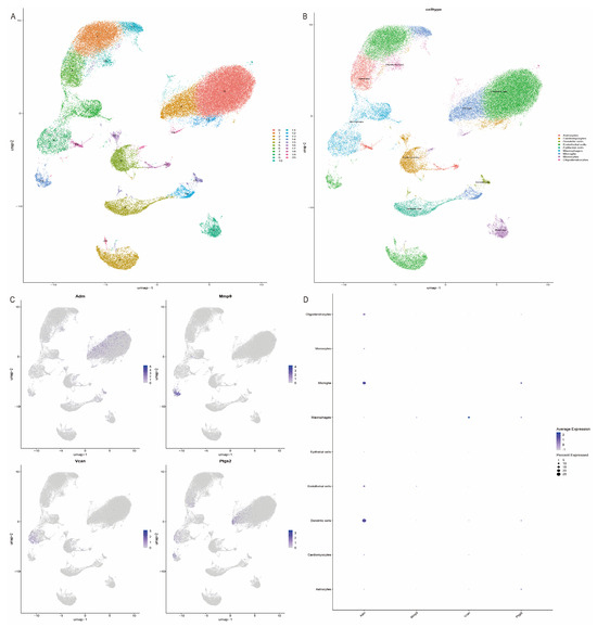 - Hu, C.; Li, T.; Xu, Y.; Zhang, X.; Li, F.; Bai, J.; Chen, J.; Jiang, W.; Yang, K.; Ou, Q.; et al. CellMarker 2.0: An updated database of manually curated cell markers in human/mouse and web tools based on scRNA-seq data. Nucleic Acids Res. 2023, 51, D870–D876. [Google Scholar] [CrossRef]