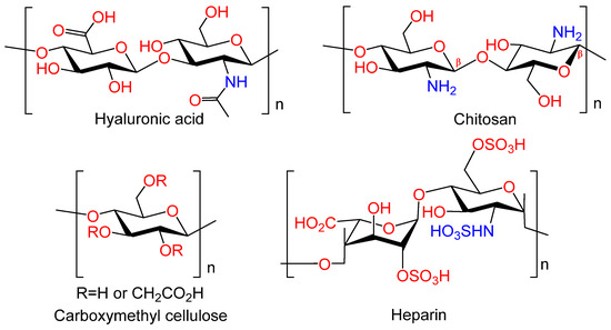 Polysaccharides, naturally occurring carbohydrates (Figure 7), exhibit low toxicity, high biocompatibility, and in vivo biodegradation ability. These properties render them as ideal candidates for use in a variety of biomedical devices, implants, and tissue engineering applications. Furthermore, numerous polysaccharides have been demonstrated to exhibit a multitude of additional biological actions, including antimicrobial, anticoagulant, antioxidant, immunomodulatory, hemostatic, and anti-inflammatory effects [53]. These properties may potentially confer additional therapeutic benefits to the metal implants.
