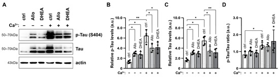 2.3. Tau-Modifying Proteins Are Not Significantly Affected by Neurosteroids and High Extracellular [Ca2+]