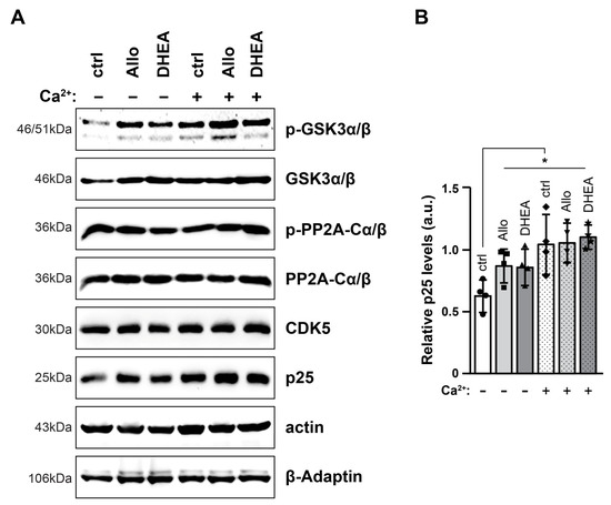 Konsta V, Paschou M, Koti N, Vlachou ME, Livanos P, Xilouri M, Papazafiri P. Neurosteroids Alter p-ERK Levels and Tau Distribution, Restraining the Effects of High Extracellular Calcium. International Journal of Molecular Sciences. 2024; 25(21):11637. https://doi.org/10.3390/ijms252111637