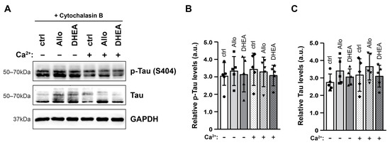 2.2. Neurosteroids Increase Tau Levels but Attenuate Their Ca2+-Induced Rise