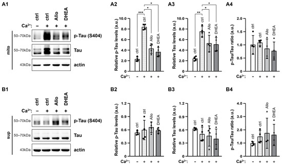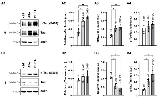 2.6. Neurosteroids Cause an Increase in Tau Levels in the Mitochondria-Enriched Fraction