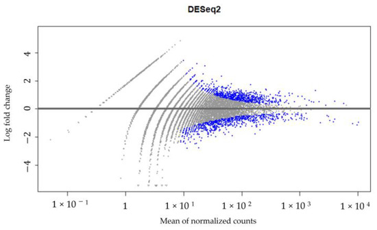 Library preparation for the bulk sequencing of poly(A)-RNA was performed as described previously [58]. Barcoded cDNA of each sample was generated using the Maxima RT polymerase (Thermo Fisher Scientific, Los Angeles, CA, USA) and oligo-dT primers containing barcodes, unique molecular identifiers (UMIs) and an adaptor. The 5′-ends of the cDNAs were extended by a template switch oligo (TSO) and the full-length cDNA was amplified with primers that bind to the TSO site and the adaptor. An NEBNext® Ultra® kit was used to fragment the cDNA. After end repair and A-tailing, a TruSeq adaptor was ligated and the 3′-end fragments were finally amplified using primers with Illumina P5 and P7 overhangs. The library was sequenced using a NextSeq 500 (Illumina, Los Angeles, CA, USA) with 65 cycles for the cDNA in read 1 and 19 cycles for the barcodes and UMIs in read 2. The data were processed using the published Drop-seq pipeline (v1.0) to generate sample- and gene-wise UMI tables [59]. The reference genome GRCh38 was used for alignment. The transcript and gene definitions of GENCODE v38 were used.
